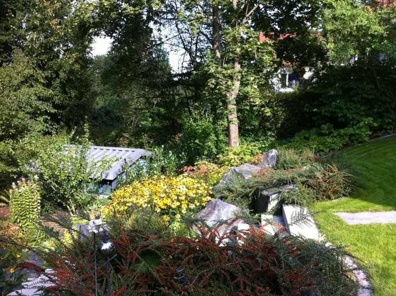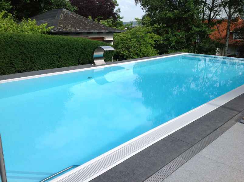 Umgestaltung einer Rasen- und Pflanzfläche, entstanden ist eine Wohlfühloase mit Terrassen, Dusche und Pool